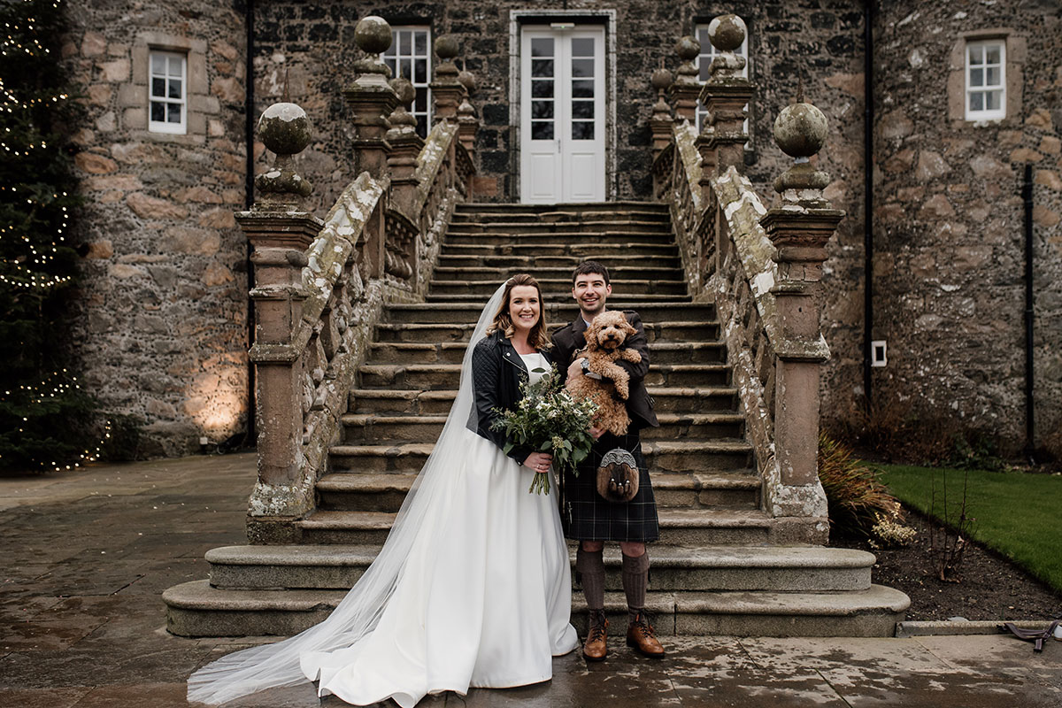 An intimate Christmas church and castle wedding near Edinburgh with stunning flowers, fireworks and homemade crackers