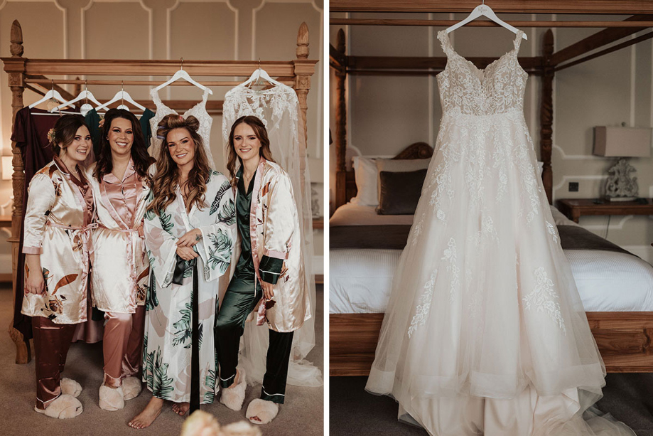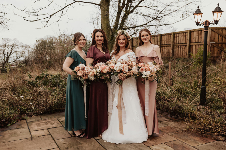 Bridesmaids dresses “I gave them free reign but asked if they could choose autumnal tones. Two picked Baltic Born gowns and the other chose an ASOS number.”