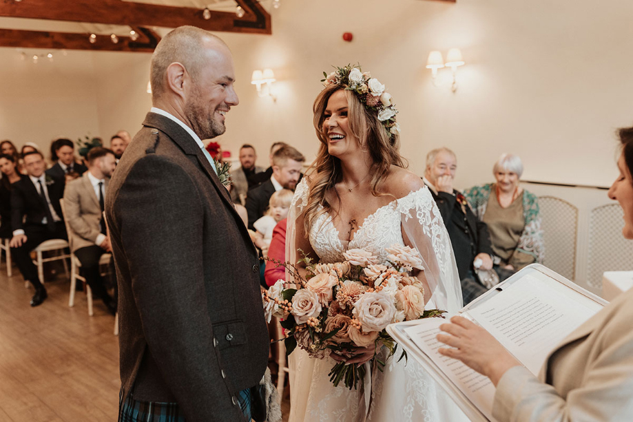 We had 70 guests during the day, with a further 40 in the evening (prior to this we also had a small legal ceremony at the Edinburgh City Chambers). On the day itself, we chose a humanist ceremony as we wanted it to be personal to us and celebrant Sarah Hammal captured our sense of humour perfectly.