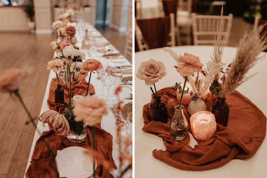 Working in the wedding industry as a make-up artist at Alchemé Beauty, I am surrounded by inspiration. We wanted to incorporate a bohemian feel, with a lot of natural elements and personal touches in keeping with the warm autumnal tones of year. My favourite wedding detail ended up being the beautiful flowers provided by A Curious Arrangement. I had my flower crown dried as a nice keepsake.