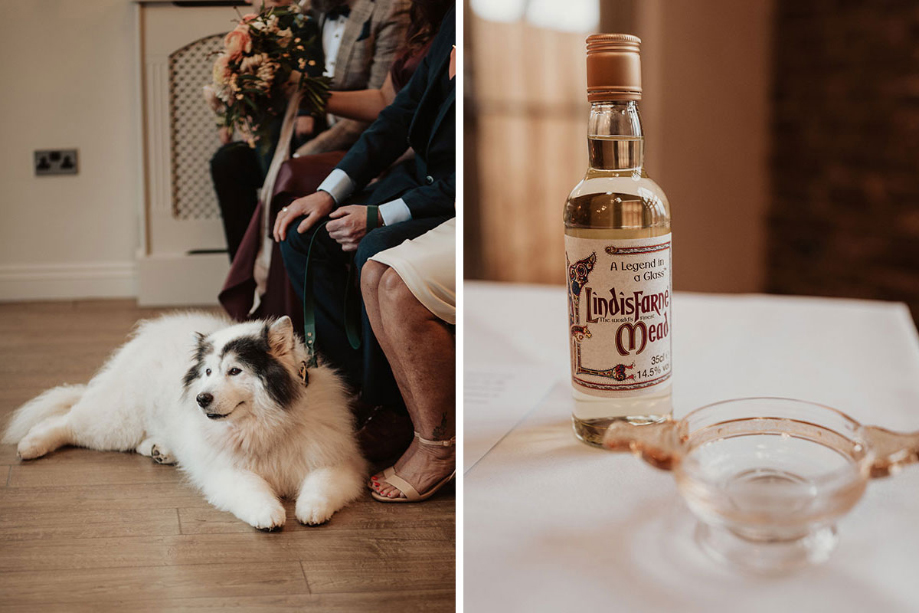 As we had done the legal side of things beforehand, our ceremony was really fun and focused on our story. We loved having our Pup of Honour, Saskia, involved: it was great that the venue let us have her as part of the wedding.