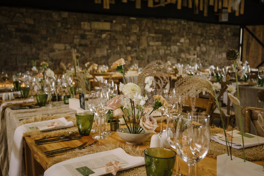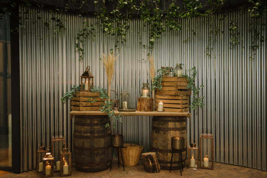 We wanted our wedding to be as eco-friendly as possible, inspired by our favourite animated movie WALL-E. It was important that it was in keeping with the surrounding area of the farm, focusing on nature and bringing the outside in, but in a glamorous way.