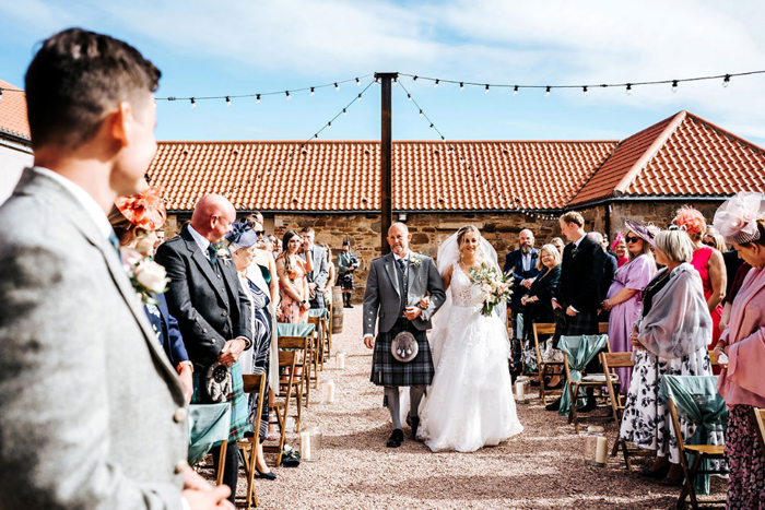 We chose Falside Mill for our venue because it’s modern and rustic. It also had a courtyard area; we both wanted to get married outside, but knew with the Scottish weather that it would be risky, and our venue allowed for a last-minute change of plans.