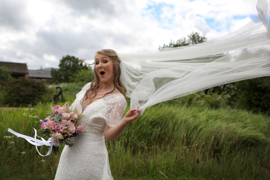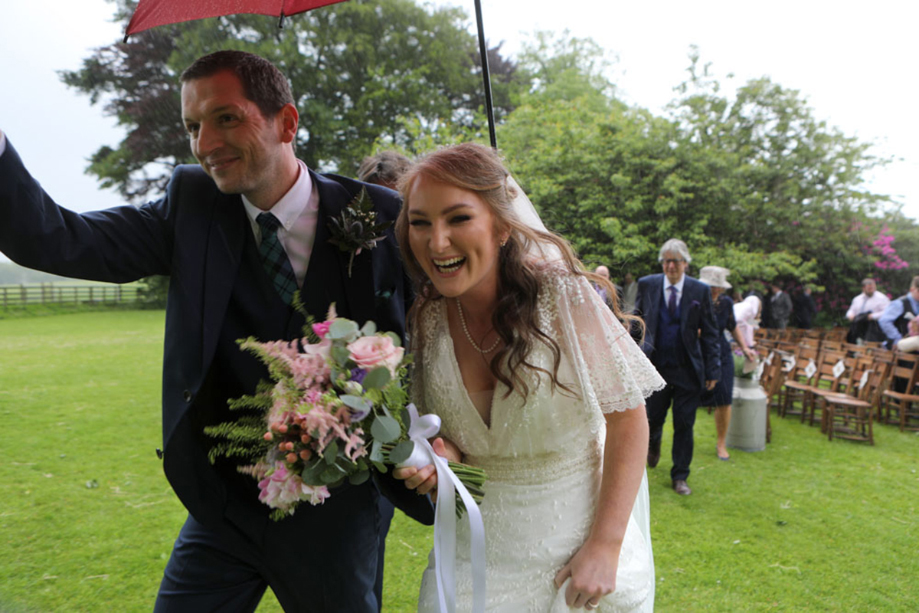 We were adamant we wanted to be married outside surrounded by flowers, hills and fields. The weather however had other ideas; it kept switching from rain showers to sunshine and wind.