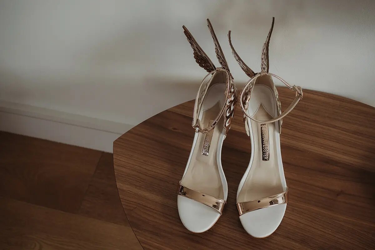 I had searched online for a gown and found nothing I liked. I went to one bridal shop to pacify my mother and hated the styles I tried on! In the end, I designed my dress exactly how I envisioned it, unique to me. On the day, I finished off the look with jewelled ankle bracelets.