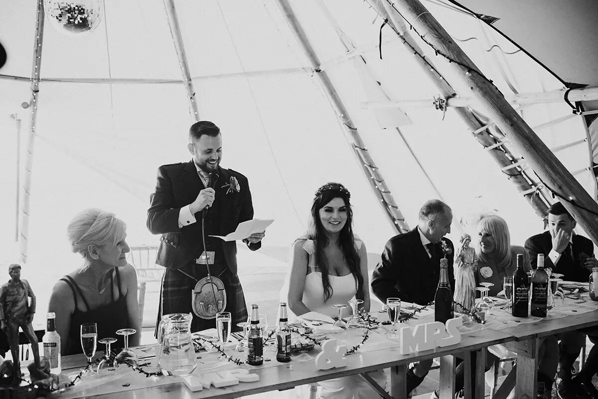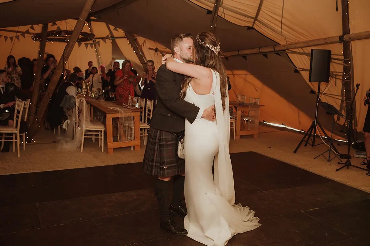 Our small and intimate humanist ceremony was conducted by Neil Lynch. We had 60 guests, as well as our daughter Nevaeh and fur babies Ollie and Mylo, all celebrating with us. Our piper, Chloe Steele, played My Heart Will Go On as I walked down the aisle, and it was even more incredible than I could ever have imagined.