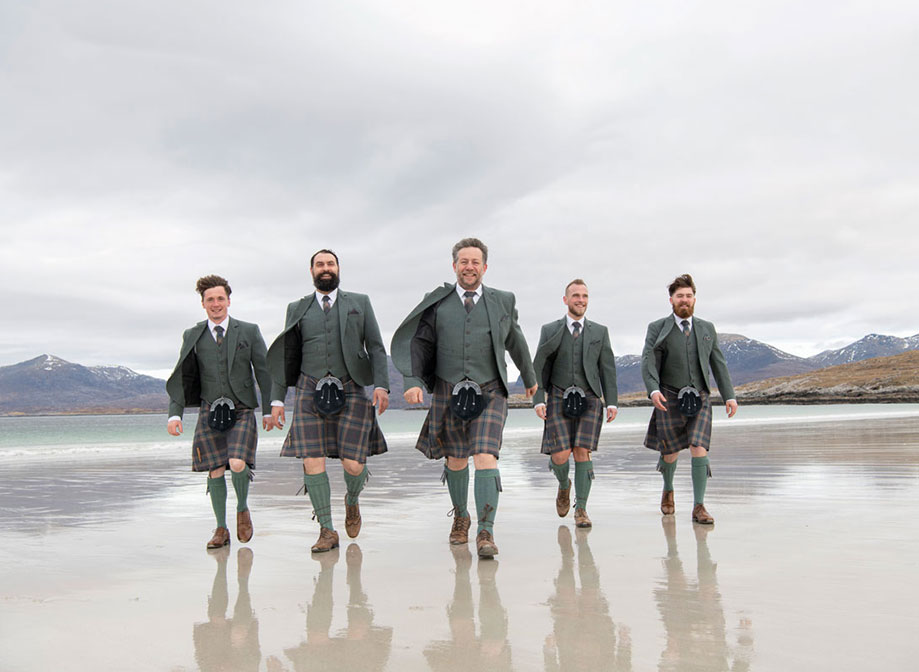Four real grooms elevate their wedding day style with bespoke suits and kilts