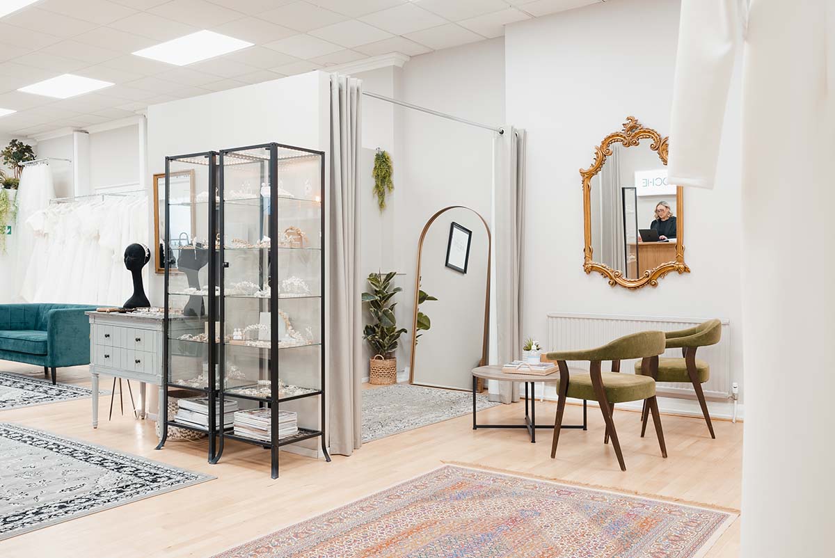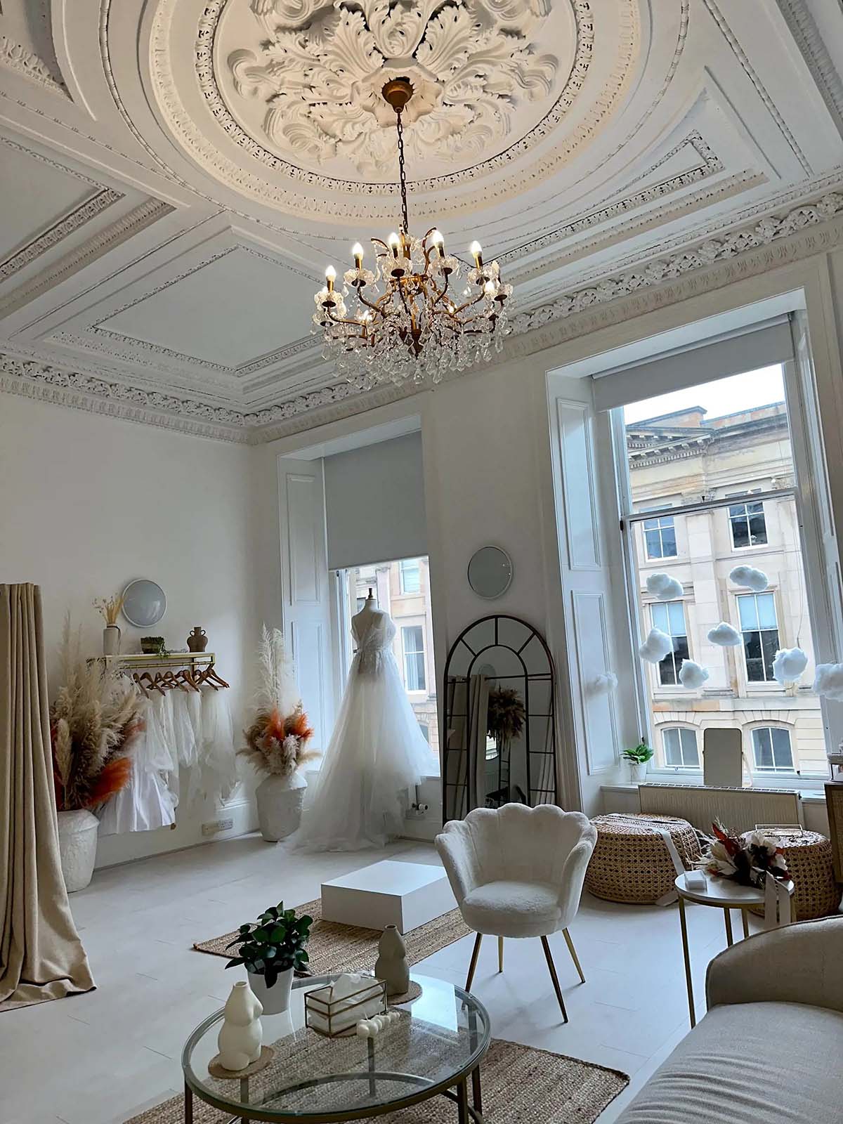 Melle Cloche is a modern bridal boutique situated on the ground floor of a beautiful townhouse (just off Charing Cross in Glasgow).