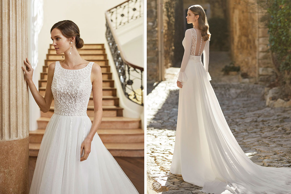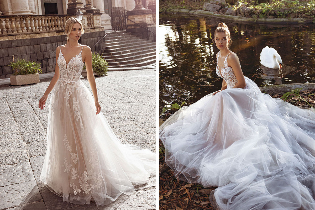 From left: Rachel dress; Raissa dress; both £POA, Enzoani at Amy King Bridal and Beauty