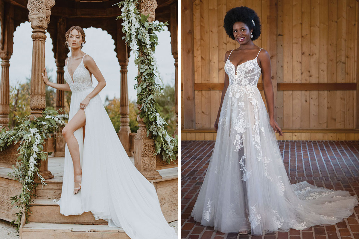 Brides have been clamouring for the brand’s flattering silhouettes, many of which feature low backs and lots of detail.