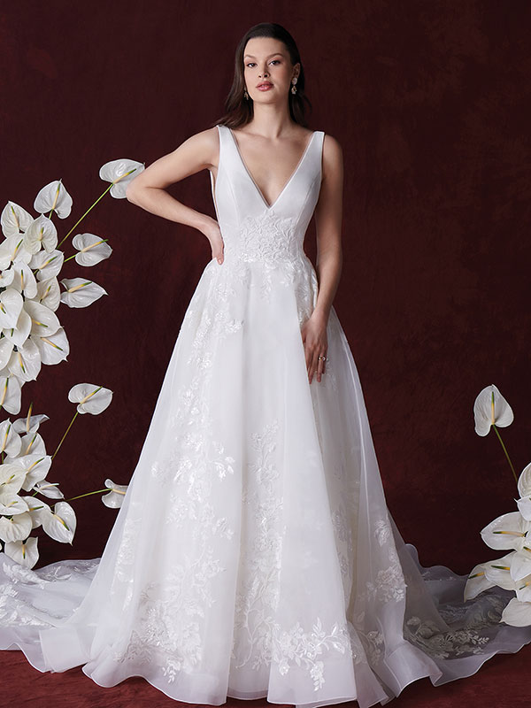 To see all of the wedding dresses on offer, including the Halo A-line by Adore by Justin Alexander and mikado-bodice Hattie by Justin Alexander below, simply head to the sale section of Alison Kirk Bridal’s website where prices and sizes are available for reference.