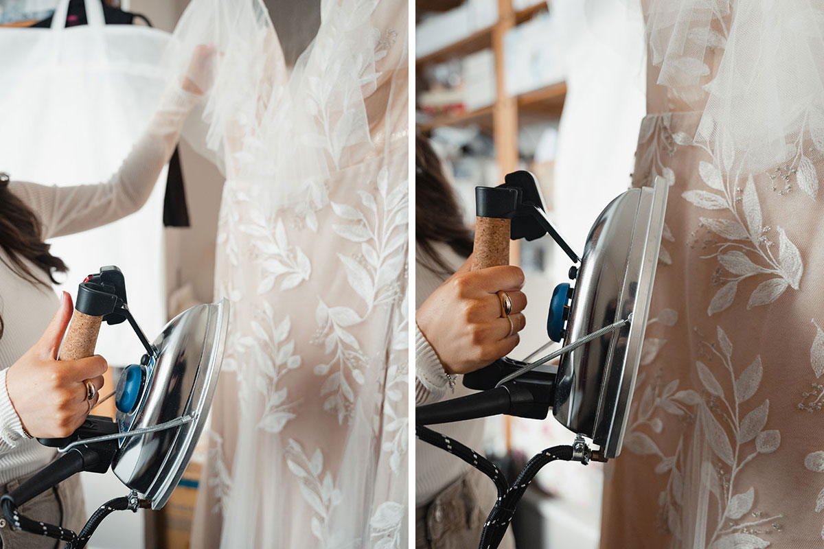 When it comes to your everyday wardrobe, there’s no harm in testing a few nifty hacks from white vinegar to baking soda – but when it comes to the finer fabrics of your wedding day ensemble, it’s worth tasking it to the professionals.