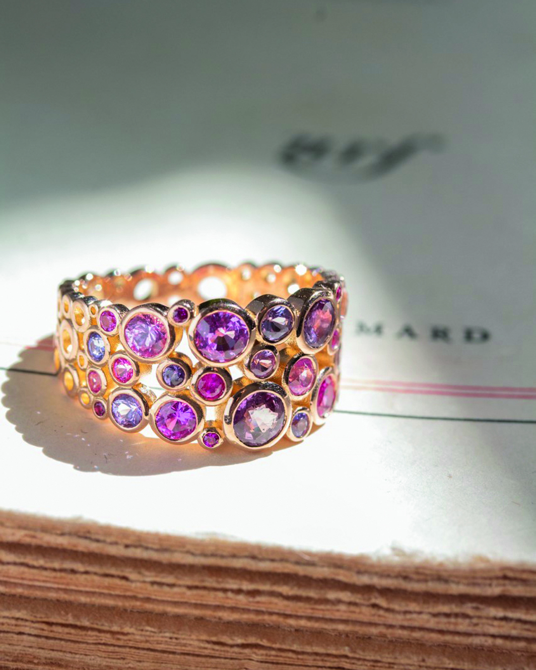 How did you get into the jewellery world? I was drawn to the idea of learning a craft that would give me a creative future and also help me earn a living. While cutting and polishing stones at an amateur lapidary club during my second year of art college in Edinburgh, I set my first stone in a silver ring. That was my first jewellery-making experience and where I started my journey.