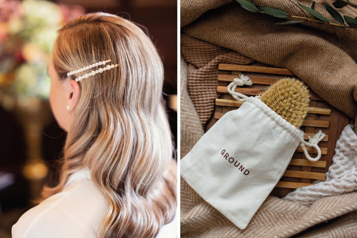 Left: AMM Hair and Makeup Team say the key to fab wedding hair is to start the prep at least three months in advance (Photo: Craig & Eva Sanders Photography); Right; Ground Dry Body Brush, £29