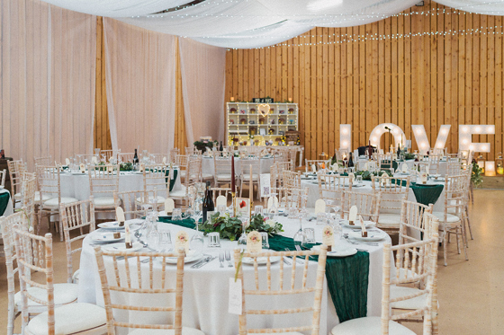 Originally an agricultural building used for lambing and calving, the barn has been fully renovated and now offers a warm, welcoming environment for up to 120 day guests and 150 evening guests. Couples booking the venue enjoy at least three days’ exclusive use of the barn and gardens, allowing plenty of time for relaxed setup and personal touches.