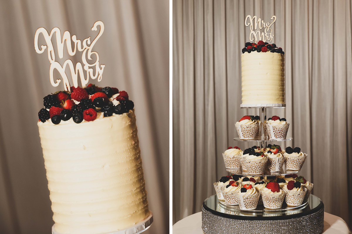 Our wedding cake by local company Louise’s Rainbow Bakes was a bit different from the norm. We got cupcakes made alongside a bigger cake. They were stacked onto a cake shelf with the main cake on top and the cupcakes below. It was simply plain vanilla sponge and icing with fresh fruit, but we absolutely loved it.