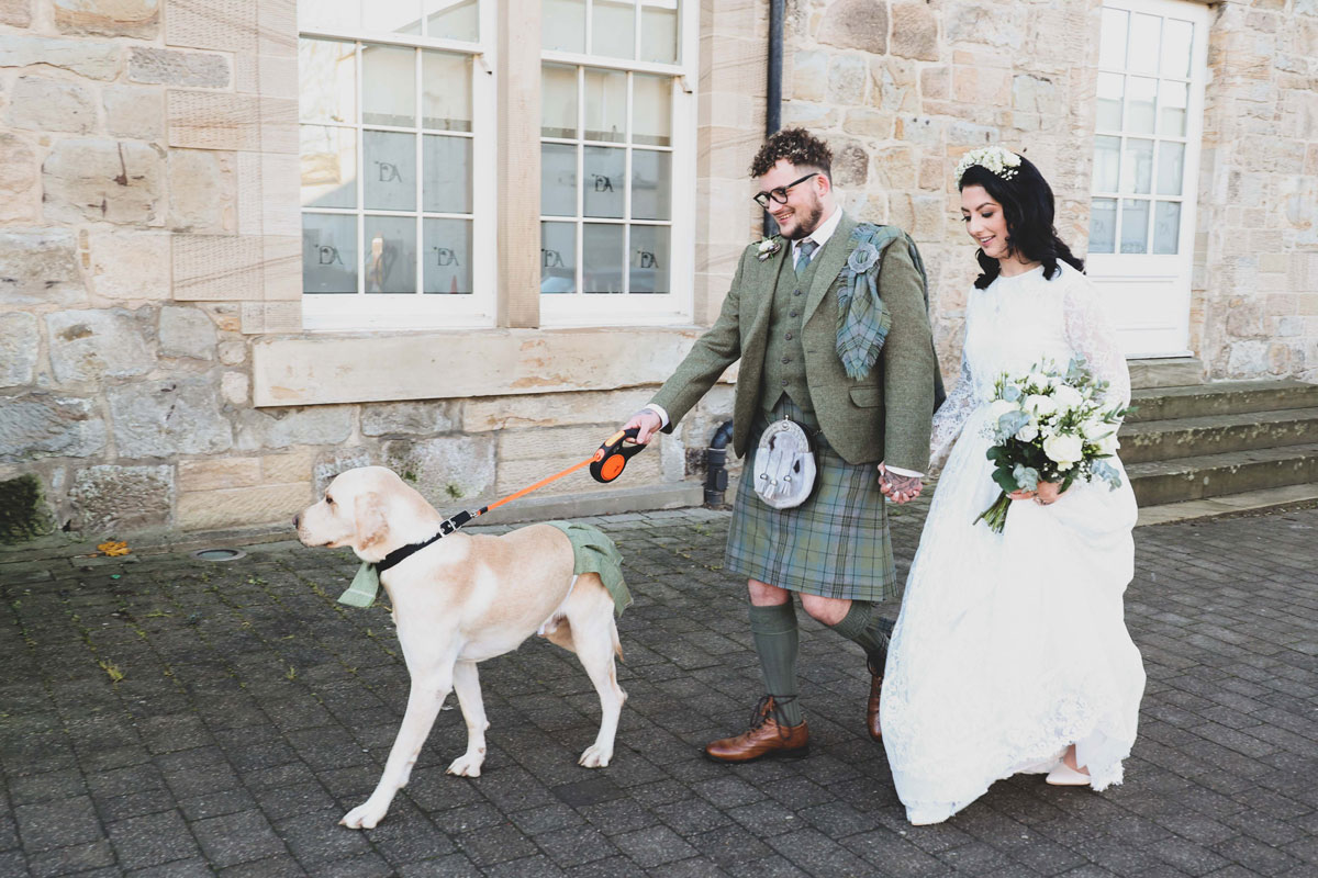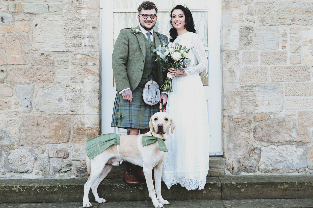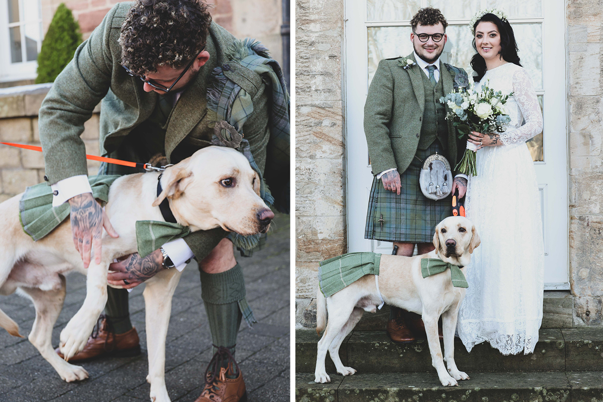 We have a Labrador named Fury who is a big part of our lives. We had him brought over to the wedding and got some photos of him wearing his little doggy kilt that George’s mum had made. Getting our pictures taken with him is one of the undoubted highlights of the day.