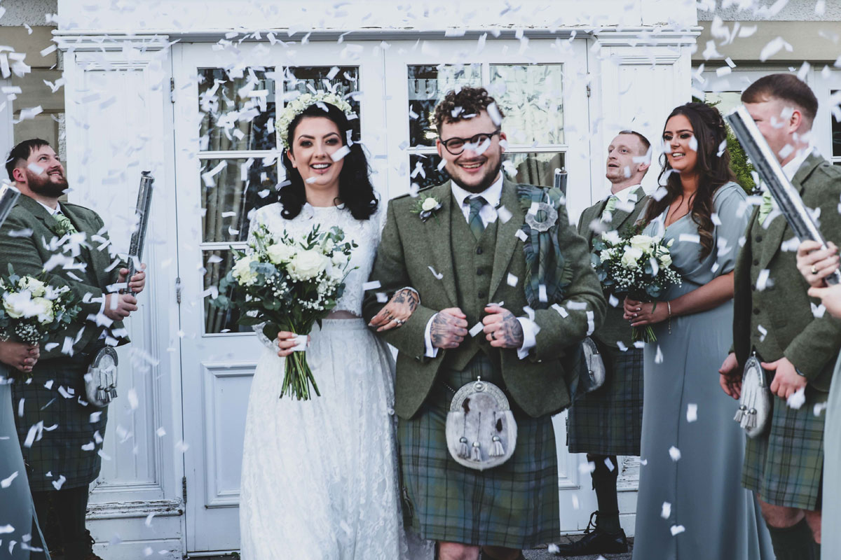 Shannon and George’s wedding was made even more memorable thanks to contributions from relatives and friends – and the appearance of their dog wearing a homemade kilt