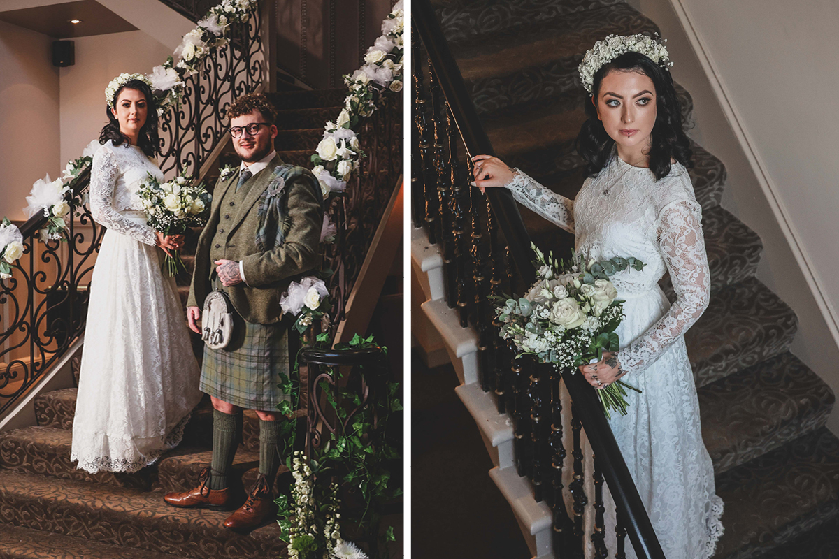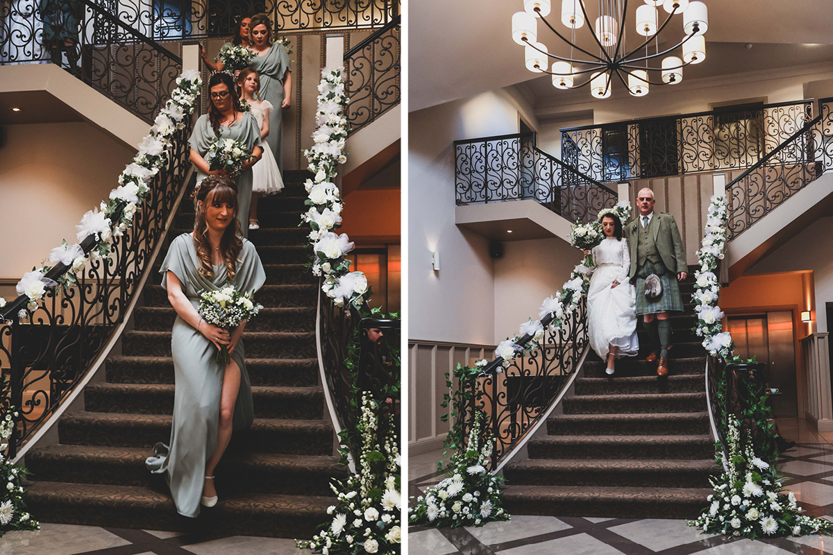 My talented stepmum, aka Allysons Flowers For All Occasions, did our wedding flowers. I put all my trust in her and she didn’t disappoint. They were stunning in every way. She even decorated the full staircase at the venue – such a beautiful touch.