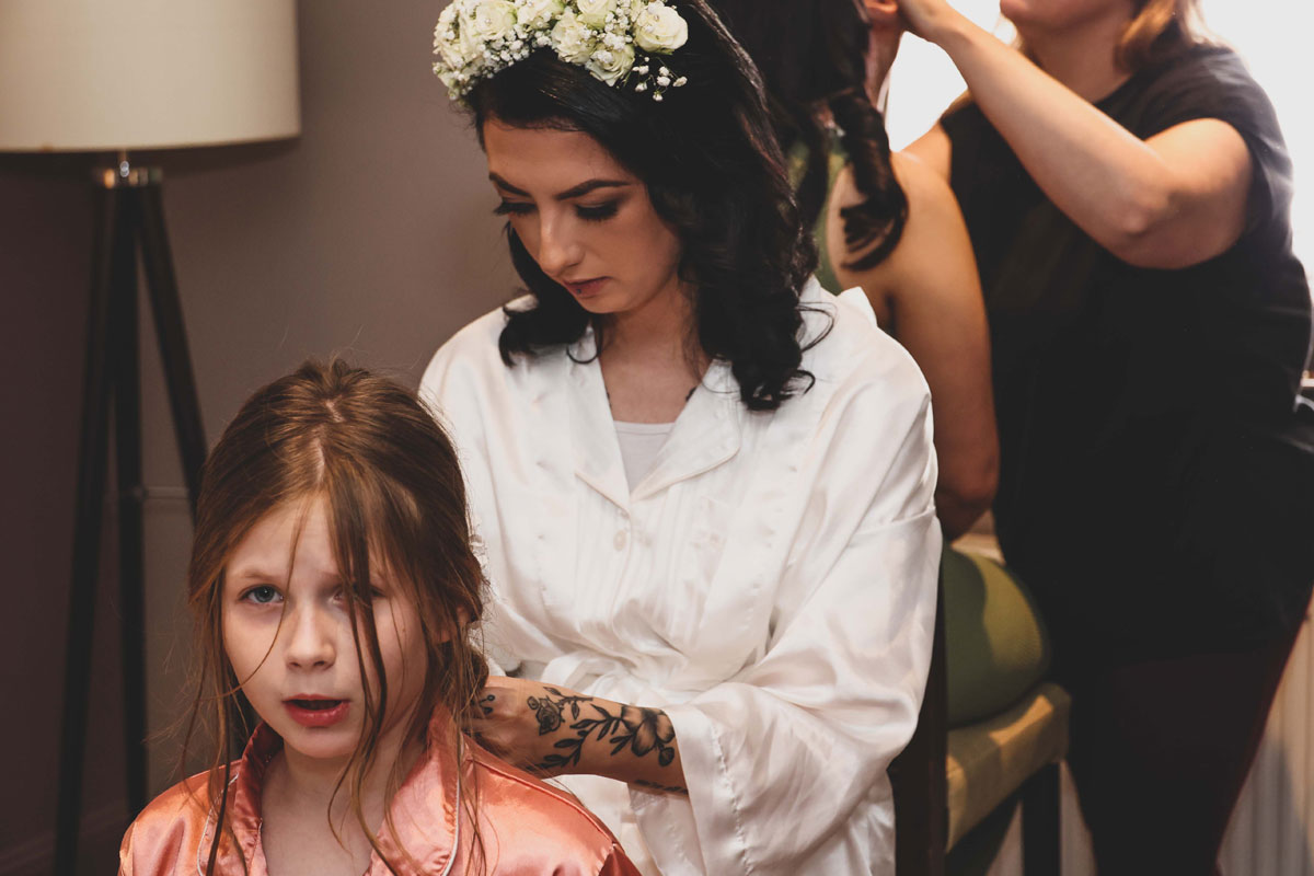 I did my little stepdaughter’s hair on the wedding morning. Plaudits to our makeup artist Hayley Findlay too, who did an outstanding job on the bridesmaids and I’s makeup.