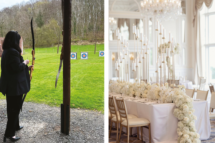 I have never shot an arrow or pulled the trigger of an air rifle before, and I take extra pride in the fact I can do it in heels. Natalaigh and Andrew tell me about the amazing outdoor pursuits on offer at the resort. The hotel puts together specialised pre- and post-wedding packages, so if golfing on a world-famous course isn’t in your repertoire, you could try clay-pigeon shooting, kayaking, off-road biking or falconry.